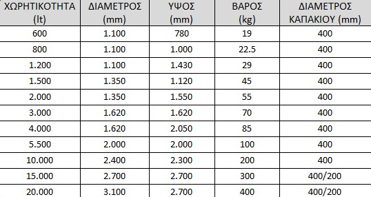 | Λίτρα | 2000, 3000, 4000, 5500, 600 |