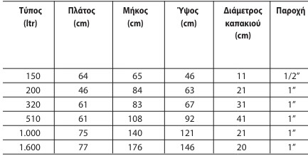 | Λίτρα | 1000, 150, 1600, 200, 320, 510 |